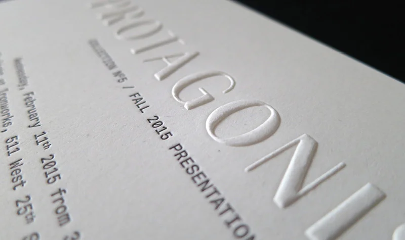 Embossing uses a metal plate to stamp the paper to make a raised image. This process creates the opposite look of letterpress printing. This technique is best used for initials for a monogram, borders on invitations, enlarged text, or the return address on envelopes.