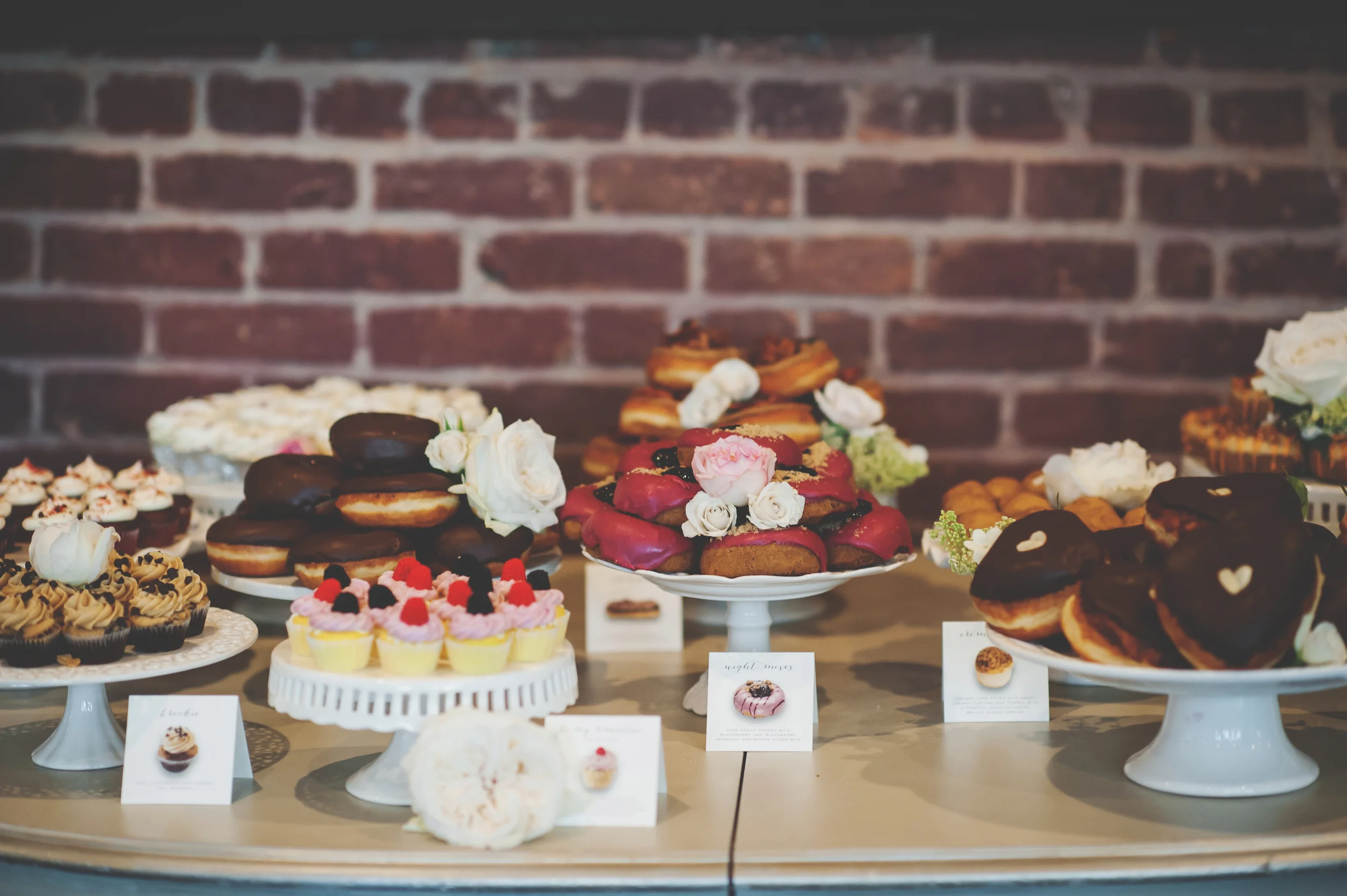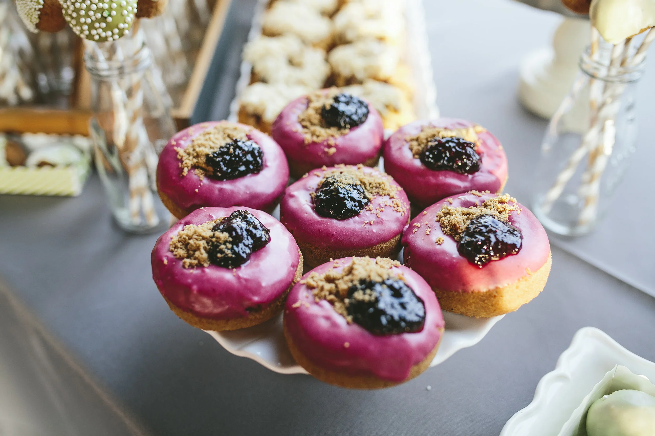 The Glam Doll Donuts wedding client wants something a little different than the classic dessert displays that have come to be expected at weddings. Donuts offer so much variety in flavors; your guests can taste multiple pastries without the awkward 2nd slice of cake walk of shame.